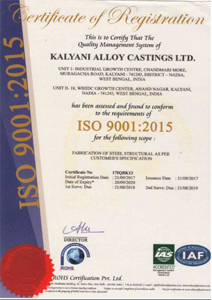 The quality management system of Kalyani Alloy Castings Limited has been assessed and found to comply with the requirements of